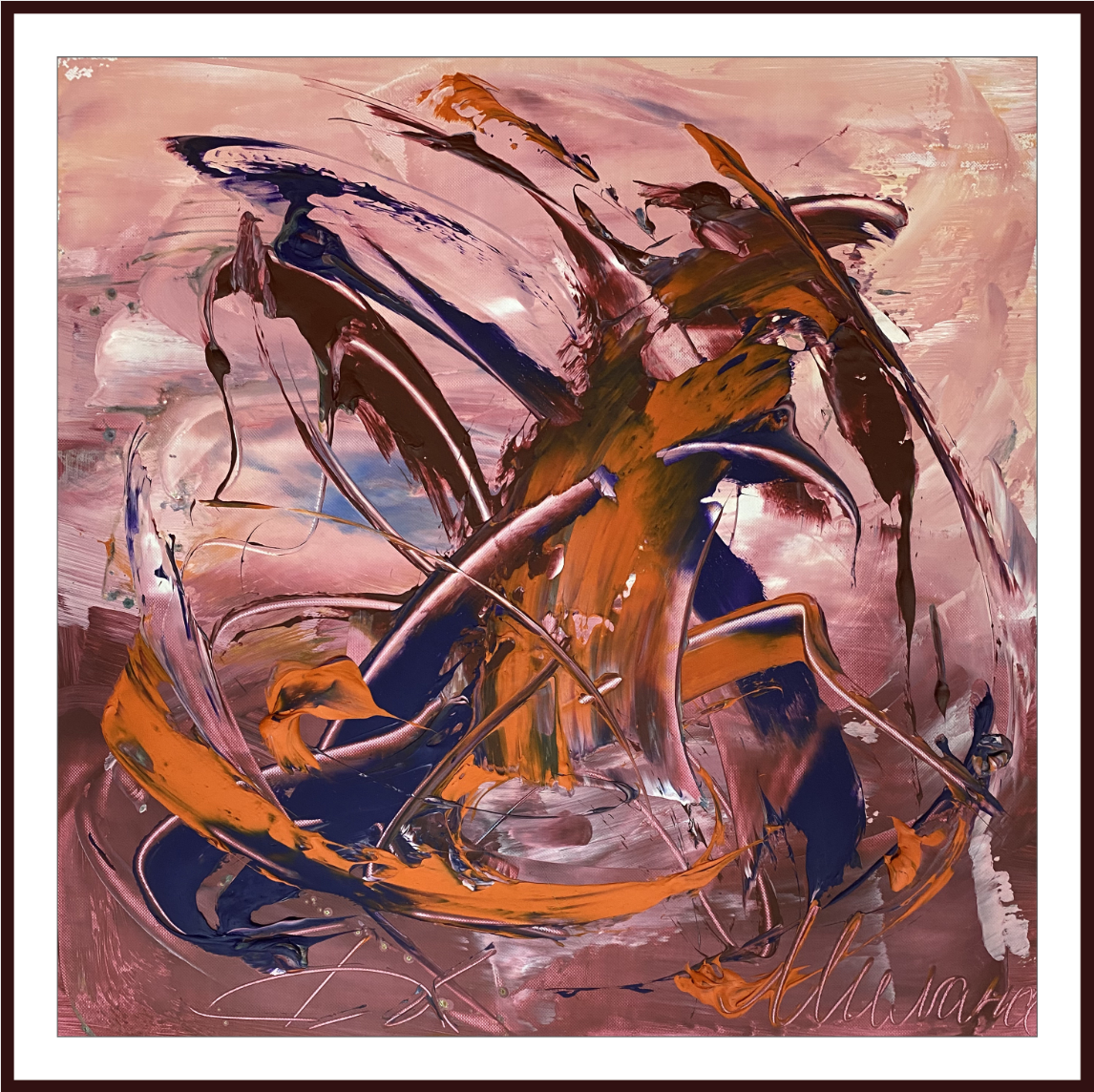 Сергей Дас и Милана М. 12 лет. Холст, акрил. С самого рождения мир звуков был закрыт для Миланы. Ее родители, далекие от педагогики и знаний о работе с особенными детками, не смогли научить ее ни языку жестов, ни чтению по губам. В школе ей пришлось учиться всему этому с нуля, хотя и сейчас девочка по-прежнему практически не слышит. Тем не менее, у Миланы есть своя страсть - танцы. Ей очень нравится быть в движении и выражать себя через это. Именно поэтому она с большим интересом отнеслась к процессу создания картины, когда ей предложили «станцевать» на холсте с помощью кистей и красок.