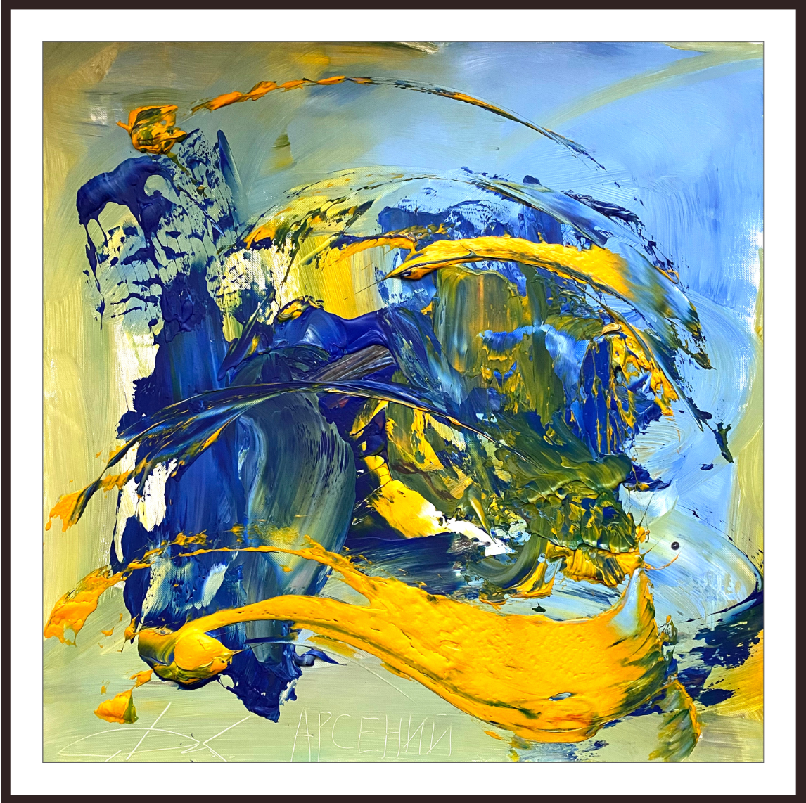 Сергей Дас и и Арсений Ч. 16 лет. Холст, акрил. Арсения сложно не заметить - высокий, стройный, активный парень сразу привлекает к себе внимание. Он родился и живет в семье спортсменов, где у него есть ещё три брата, и регулярно посещает коррекционный центр из- за особенностей в развитии. В свободное время он занимается спортом и имеет множество других увлечений. Мальчик хорошо читает, пишет почти каллиграфическим почерком, рассказывает стихи и скороговорки, разбирается в технике. С ним то и дело приключаются разные забавные истории, которые приводят в растерянность окружающих, но самого Арсения совсем не смущают. Так, например, однажды он пропал с урока, а нашли его мирно спящим на кушетке в кабинете врача. Свою картину подросток назвал именно так, потому что накануне он попал на мастер- класс по кулинарии, и тарелки с блинами до сих пор остались в его сознании сладким воспоминанием.