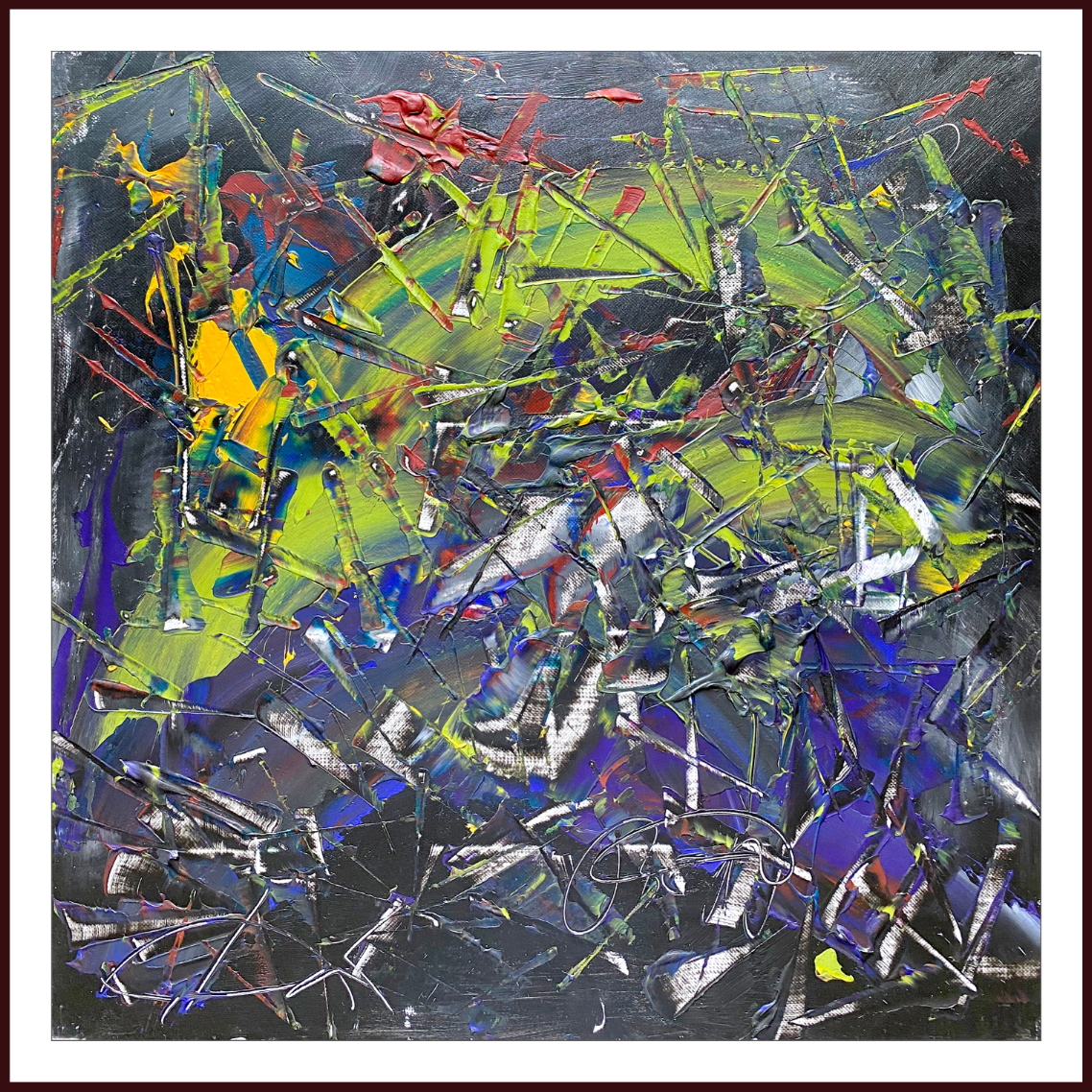 Сергей Дас и Егор В. 12 лет. Холст, акрил. Егор хочет стать летчиком, и поэтому рассказанная во время мастер- класса фантастическая история о планете разноцветных коров, где они живут своей «обычной» жизнью — разговаривают, играют и рассказывают анекдоты, очень вдохновила мальчика. На своей картине он попробовал изобразить вид этой планеты из космоса — такой же яркий и привлекательный, как и ее обитатели.