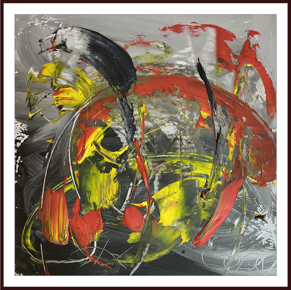Сергей Дас и Евгений С. 12 лет. Холст, акрил. Для того, чтобы дать название своей картине, Женя даже изобрёл новое слово. «Силочная доброта» для него - эта та доброта, которая не просто остаётся каким-то абстрактным понятием, а имеет силу, чтобы менять мир в лучшую сторону. То, что в мире не хватает доброты, мальчик испытал на своём опыте. Из-за того, что у него есть слуховой аппарат, мальчишки, с которыми он хотел бы дружить и вместе кататься на скейте и самокате, не принимают его. Женя считает, что доброта должна распространяться повсюду и, в первую очередь, между людьми.