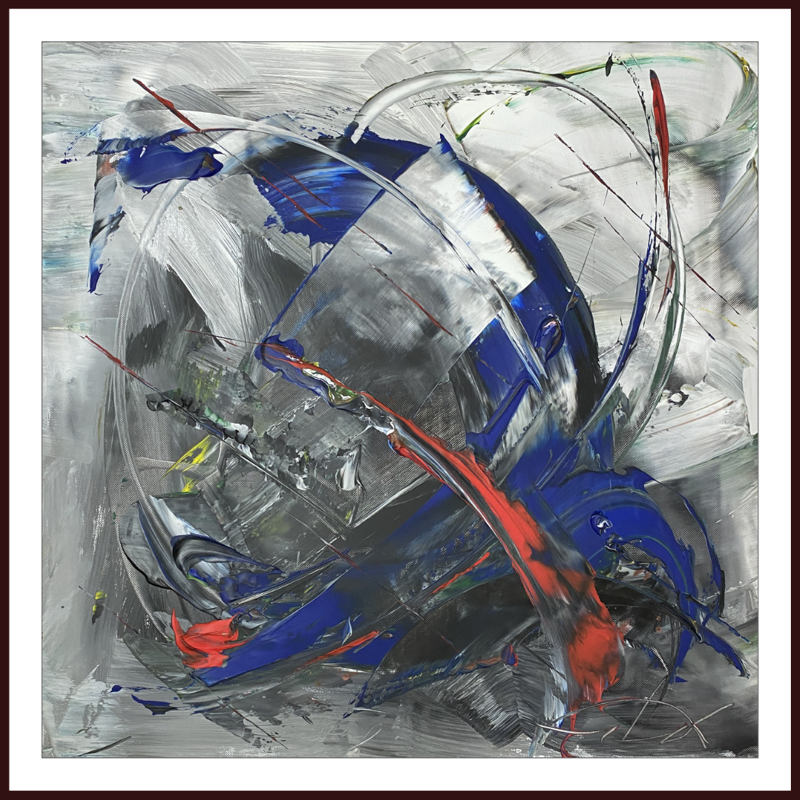 Сергей Дас и Даниил А. 16 лет. Холст, акрил. Даниил рос в большой семье, где кроме него были ещё два брата и сестра. После того, как его родителей лишили родительских прав, дети кочевали из одного детского дома в другой, но однажды Даню отправили в школу-интернат для детей с ОВЗ, так как у него появились проблемы с учебой. После этого его связь с родственниками практически оборвалась, хотя старший брат обещал взять над ним опеку, но так и не появился. Даже встретившись однажды с родным отцом Даня задавал ему только один вопрос: «Почему ты меня оставил?» Было очевидно, что в своём сердце мальчик затаил глубокую обиду на близких, и это чувство не покидало его даже тогда, когда он обрёл приемную семью. С новыми родителями и сводной сестренкой Даня «оттаял» и почувствовал, что о нем заботятся и он здесь любим и нужен. Вот почему в свою картину, где преобладают строгие чёрные, белые и серые цвета, в самом конце он решил добавить красный цвет - как олицетворение той капли любви, которую он наконец-то смог увидеть и почувствовать.
