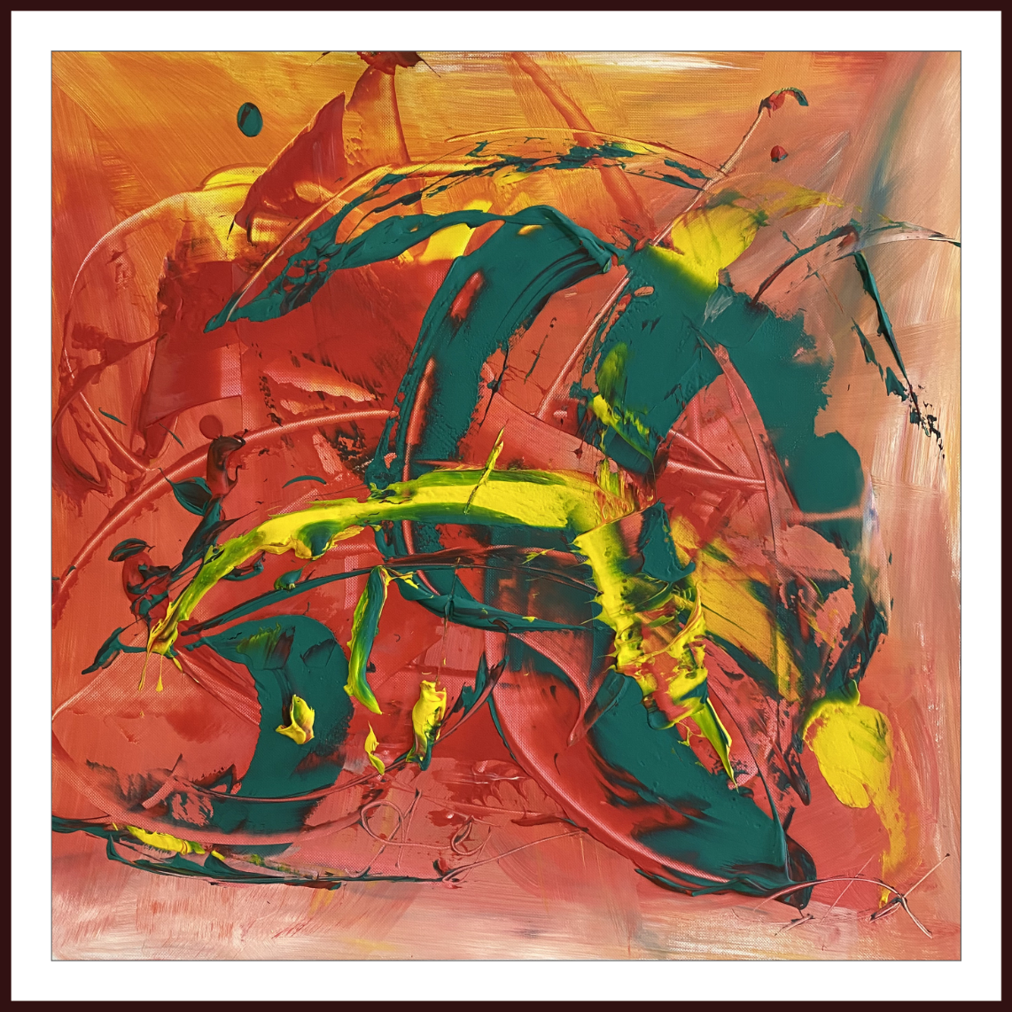 Сергей Дас и Ангелина Ф. 10 лет. Холст, акрил. Самое яркое воспоминание Ангелины – это поездка в Сочи. По словам девочки, уже подъезжая к курорту, она увидела дельфинов, резвящихся в морской воде, и это зрелище ее заворожило и восхитило. Еще одна встреча с этими удивительными животными ждала Гелю прямо на пляже, когда дельфины, не боясь людей, подплыли близко к берегу и ныряли совсем рядом с ней и ее дедушкой. Эти воспоминания и легли в основу картины, которую она написала, и мазки на которой напомнили ей о веселых резвых дельфинах, плавающих в теплом южном море.