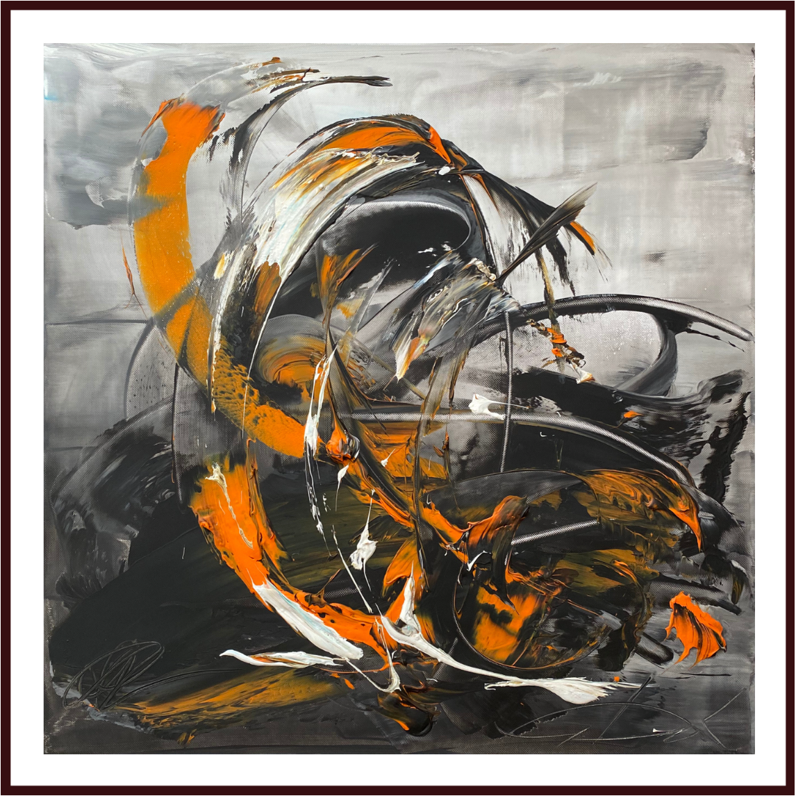 Сергей Дас и Олег В. 13 лет. Холст, акрил. Олег не настроен на душевные разговоры – на все вопросы о себе, своей жизни и своих чувствах, он предпочитает либо не отвечать совсем, либо отделываться общими фразами. Из его сжатого рассказа выяснилось, что родители мальчика вели асоциальный образ жизни, и поэтому бабушка забрала его в Краматорск, где он и прожил достаточно долгое время. Когда началась война, им пришлось вернуться в Россию, и бабушка была вынуждена отдать мальчика в детдом. Сейчас родственники периодически навещают Олега, но в нем так и чувствуется нежелание раскрывать сердце и общаться на эту тему. Когда Олег пришел на мастер-класс рисовать картину, в его облике была одна отличительная черта – на запястье были повязаны несколько разноцветных веревочек. На вопрос про них, Олежка отмахнулся, мол, девчонки в лагере привязали, пока он спал, а снять их у него все никак не доходят руки. Но, можно догадаться, что не снимает эти веревочки Олег совсем по другой причине. Наверняка такое внимание со стороны девочек было ему приятно. Интересно и то, что, выбирая краски для своей будущей картины, вместо привычных для себя черного и белого цветов, Олег остановился еще и на оранжевом цвете, – возможно, что так же, как он добавил в свою картину еще один цвет, постепенно он добавит в свою жизнь и новые, положительные эмоции.