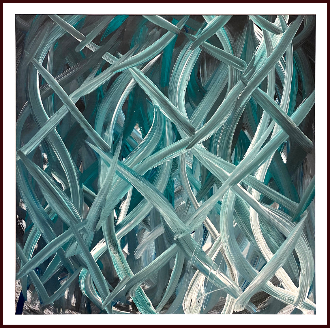 Сергей Дас и Валерия Ю. 12 лет Синтетический холст, акрил. В тот день, когда Лера попала в детский дом впервые, там проходило какое-то мероприятие для детей. Заместитель директора Анна Викторовна усадила девочку вместе со всеми, а сама стала наблюдать за ее поведением. Грустная девочка-подросток не особо интересовалась происходящим, а сидела с безучастным видом. Она была одета в модные у молодежи джинсы с порванными коленками, на которых торчали ниточки. Лера то и дело дергала эти нитки, мастеря из них какой-то одной ей понятный узор. Педагог заметила это и позже решила предложить девочке заняться разным рукоделием, что сразу отозвалось у воспитанницы. Удивительным образом похожий орнамент возник и на картине, написанной Лерой, где четкие и резкие линии отображают прямолинейный и строгий характер девочки.