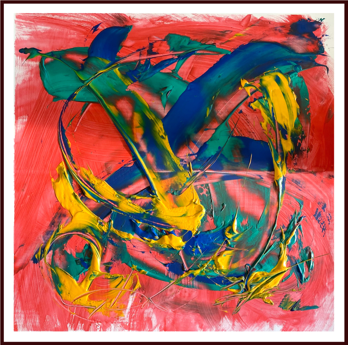 Сергей Дас и Никита Л. 16 лет. Холст, акрил. Свое детство Никита провел с мамой, а она, ничуть не смущаясь ребенка, продолжала вести асоциальный образ жизни — бродяжничать и попрошайничать. После того, как мальчику исполнилось 7 лет, ее лишили родительских прав, и Никита оказался под опекой бабушки. Но, как это часто бывает, в подростковом возрасте он связался с плохой компанией, и воспитывать его пожилому человеку стало не под силу. Вот почему с 14 лет Никита находится в школе-интернате. Но даже тут ему тесно — мальчик несколько раз сбегал из детского дома, пытаясь найти выход своей неуемной энергии. Сейчас его заинтересовал спорт. Никита пробует себя в боксе, беге, легкой атлетике и прыжках в длину. Возможно, что образ вольной птицы, который можно проследить в его картине, воплотится в жизни мальчика самым позитивным образом, и он сможет достичь свободы, не разрушая себя и окружающий мир.
