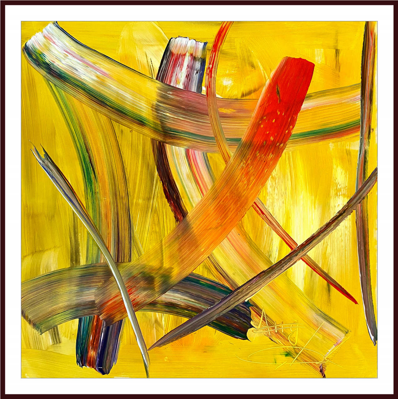 Сергей Дас и Мадина С. 12 лет «Путь на радугу» Холст, акрил. 100 х 100 Свою картину Мадина посвятила истории, которая приключилась с ней и ее сестрой. Однажды они разлили краску, и живущая у них дома белая собака испачкалась в ней. Это выглядело очень красиво благодаря ярким радужным краскам на белой собачьей шерсти. Собаку отмыли, но она убежала в лес и, как сказала девочкам мама, там ее загрызли волки и тогда душа собаки попала на радугу.