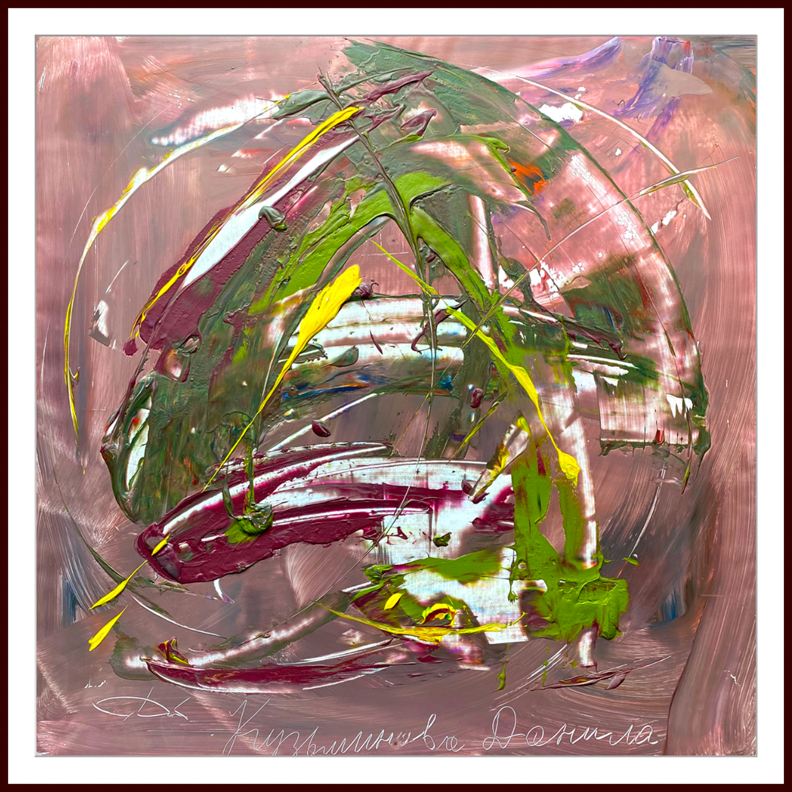 Сергей Дас и Данила К. 13 лет. Холст, акрил. Когда-то жизнь Данилы проходила совсем по-другому: он жил в отдаленной деревне, где у его родственников было большое хозяйство с быками и лошадьми. Мальчик привык к труду, вырос хозяйственным и ответственным, но, несмотря на свою отзывчивость, активность и готовность помочь, так и не нашёл общий язык с другими детьми из-за особенностей развития. Вот почему вся жизнь Данилы сейчас сосредоточена на нем самом, и, похоже, это общество его абсолютно устраивает.