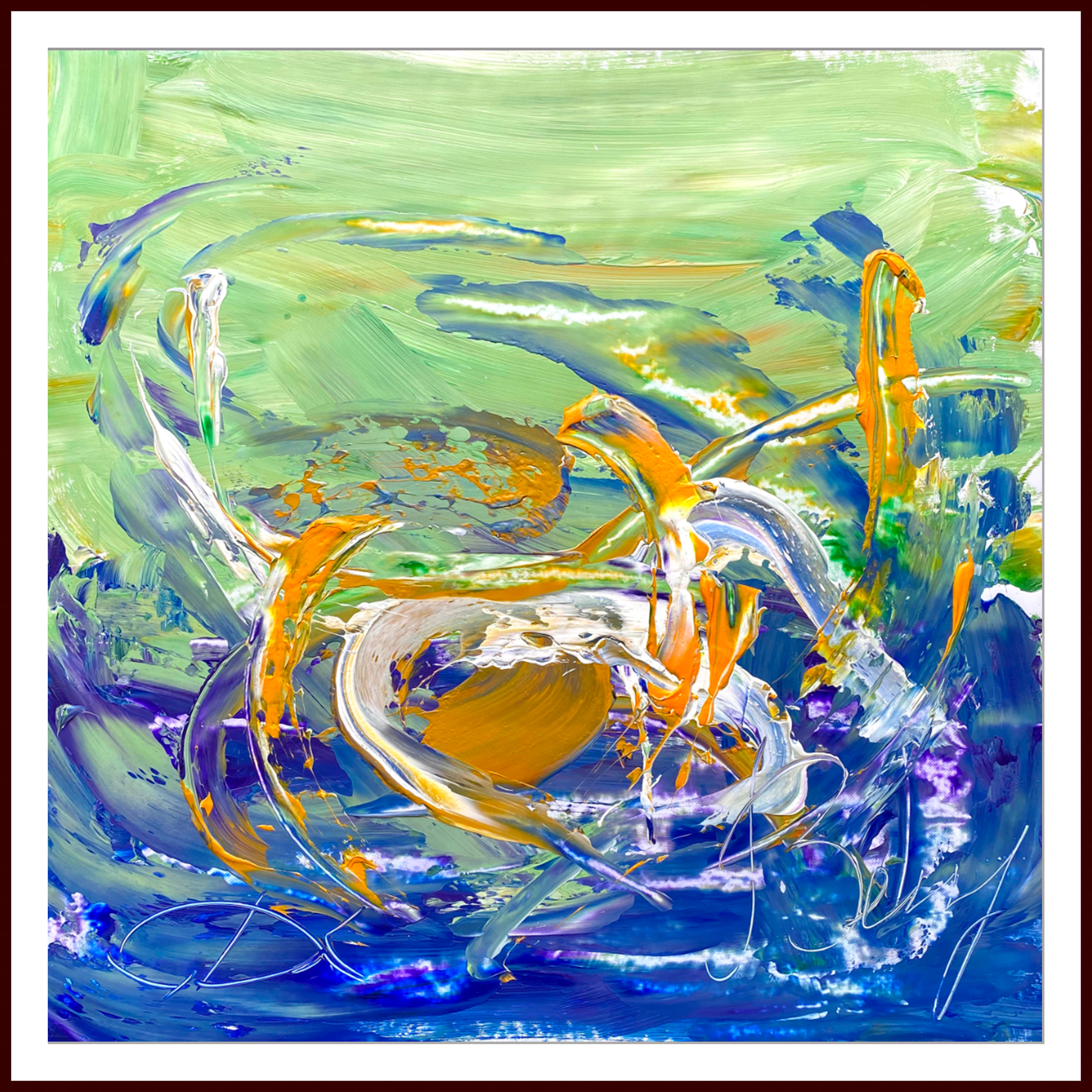 Сергей Дас и Ева В. 13 лет. Холст, акрил. У Евы есть три брата, мама, папа и бабушка. Но сейчас она воспитывается в детском доме. Отношения остались только с бабушкой. Ева говорит, что для нее из всей семьи бабушка дороже всех. Я попросил Еву вспомнить самый счастливый момент. Она рассказала, как 4 года назад, когда вся семья была вместе, они пошли за грибами и ягодами в лес. Долго шли и начался дождь. Грибной, вместе с солнышком. После этого дождя всё в лесу сияло в солнечных лучах. У Евы осталось радостное чувство от того, что все были вместе, и все были счастливы.